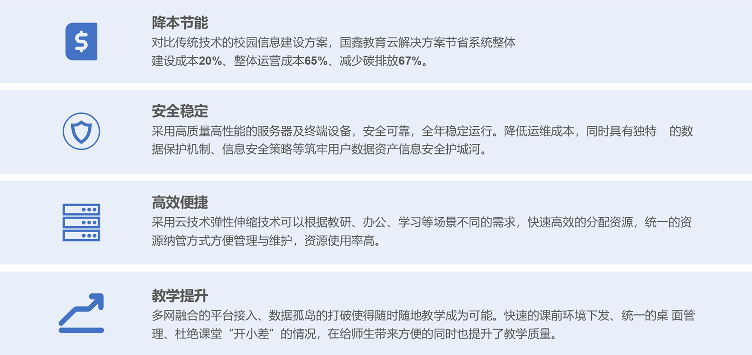 qy球友会(千亿)电子教育云解决方案是针对教育业现状及遵循政策指导方向,采用自研国产硬件及自研软件平台,推出的教育行业云平台方案。方案基于云计算技术、互联网+战略格局、契合融合创新的思路,助力校园智慧建设,更好地为教育改革和开展给予信息化基础环境支撑。